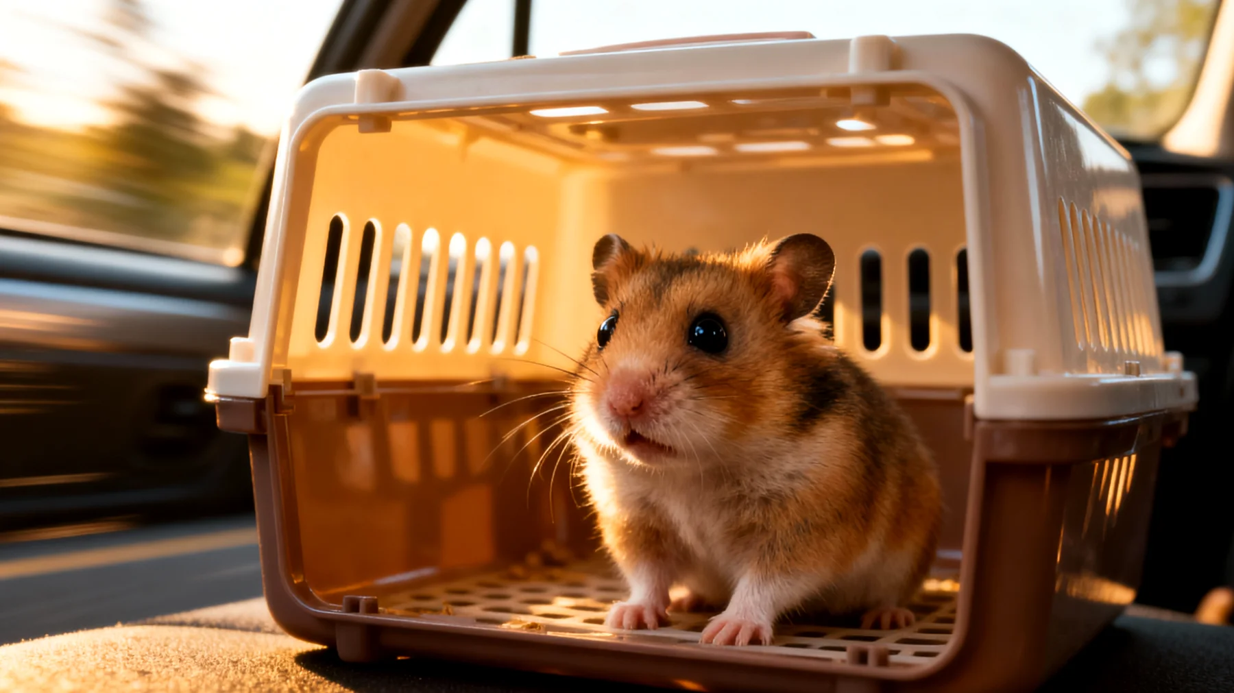 Platziere die Box im Auto niemals auf dem Beifahrersitz oder im Kofferraum. Der Fußraum hinter dem Beifahrersitz ist optimal – relativ erschütterungsarm und gut temperierbar. Fahre vorausschauend, vermeide abruptes Bremsen und nehme Kurven langsam. Dein Fahrstil hat direkten Einfluss auf das Stresslevel deines Hamsters.
